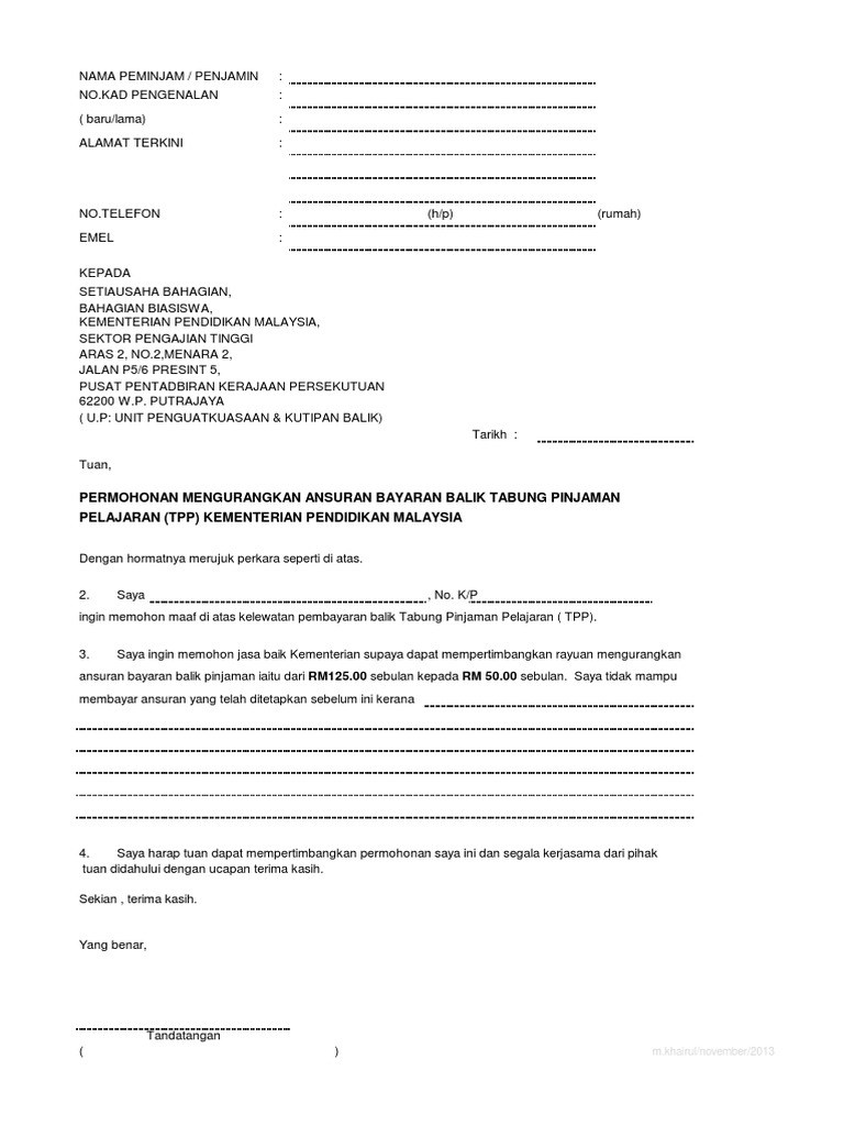 Surat Permohonan Pengurangan Ansuran Bayaran Balik Pdf